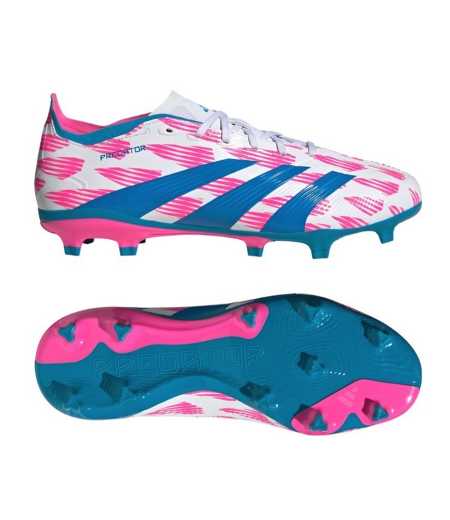 adidas Jr Predator League FG Soccer Shoes - Cloud White/Solar Blue/Pink