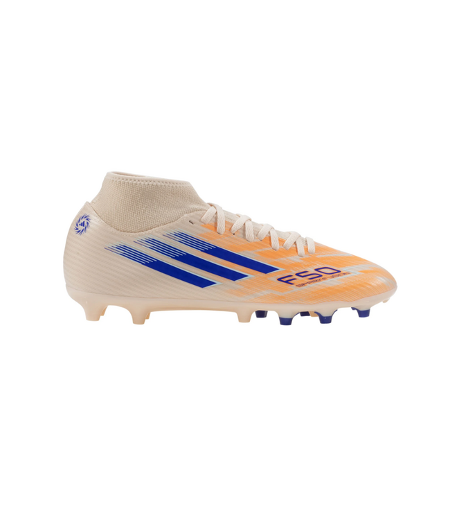 The F50 Sparkfusion Club Mid Cut Firm Ground / Artificial Ground Soccer Cleats are designed with precision to transform how you play, with a fit that feels just right. The extended knit collar offers a snug fit for support, while the semiconical studs support quick rotations and push-offs. The Sprintplate Fusion outsole is engineered for impressive traction and ease of movement. The Fiberskin upper enhances ball touch, giving you the edge in big matches. adidas brings innovation to the forefront with these stylish cleats that are as dynamic as your moves on the field.