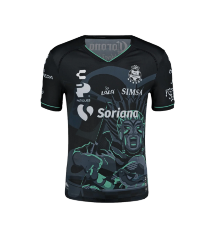 The passion for our culture unites us in an exclusive collaboration with Metzican, the illustration and mural studio whose graphic style celebrates and enhances the richness of Mexican culture. Introducing together the Santos CHARLY x METZICAN Third Jersey Edition 24-25 for Men, a clothing that reflects the essence of Los Guerreros by capturing the spirit of struggle and unity that characterizes Club Santos Laguna and its tireless fans.