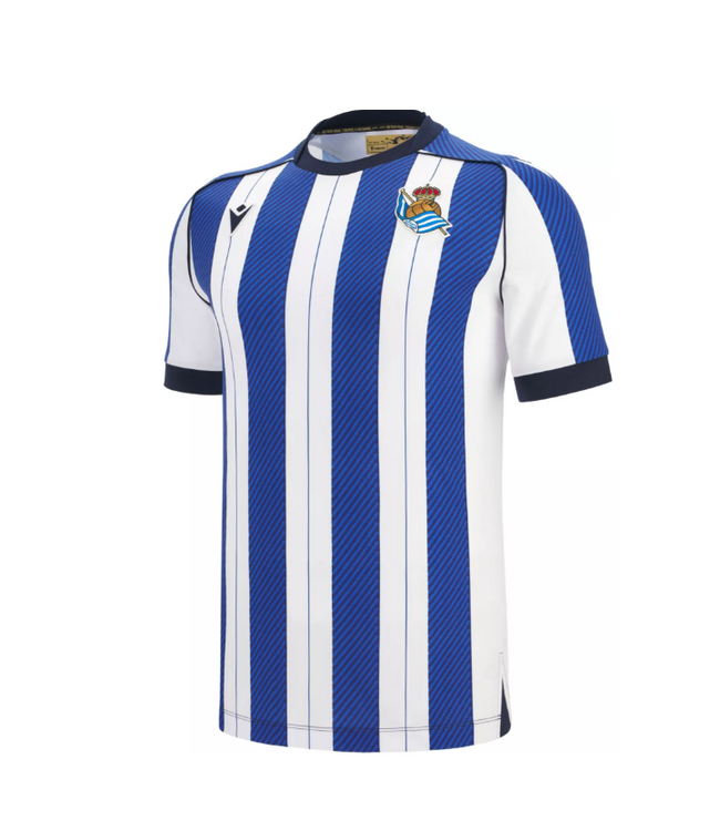 Take to the field with the Real Sociedad 2025/26 adults' home match jersey, made from Eco Softlock, a symbol of innovation and sustainability. The crewneck collar ensures comfort, while the Eco micromesh back provides breathability. The iconic blue and white stripes are a nod to tradition, with the embroidered logo expressing belonging and pride. Carry the spirit of the team with you and experience the thrill of genuine support: wear your colors with passion and get ready to make a difference!
