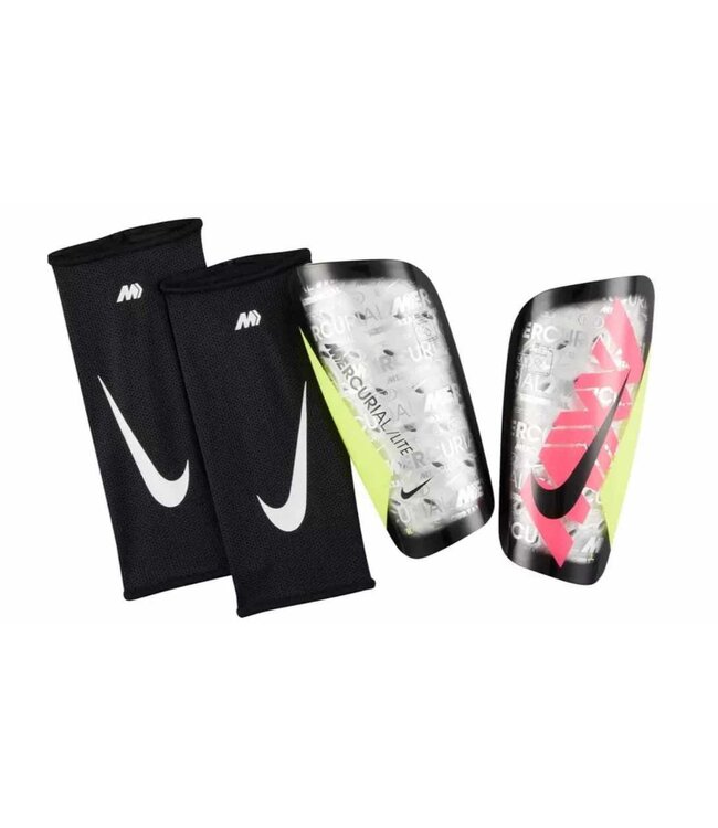 Nike Mercurial Lite XXV Shin Guards - Metallic Silver/Pink Blast/Volt